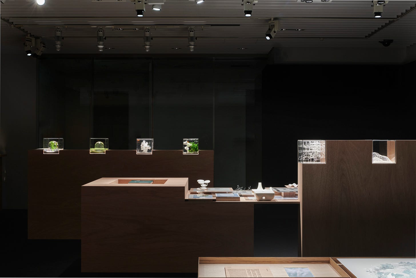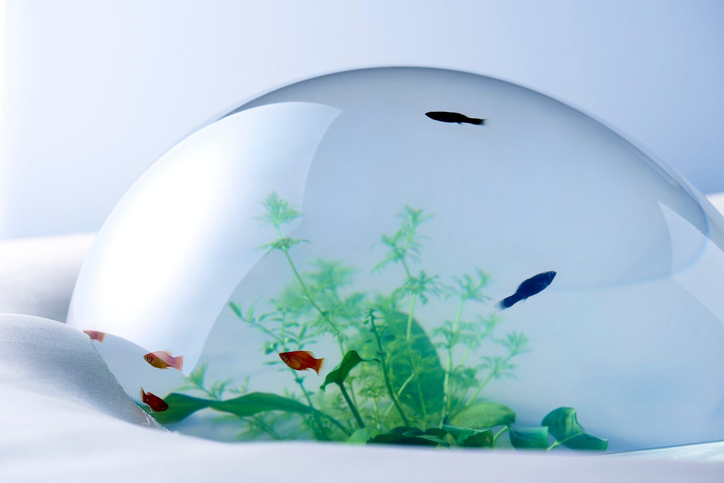 三澤:水中の小さな生き物のために、お魚に限らず、カメとかエビとか他の生き物も出てくるのですが、そういう小さな生き物のための環境です。まず生き物が凄く好きで、小学校の頃から飼っていたのもあって、ずっと観察を家でしていることが多かったのですが、その中で生き物たちが住んでいる環境というものにとても興味があって、そこを掘り進めた時にどんなものになるかなと。小さい20センチ角のキューブ状の水槽の中に、生き物たちそれぞれの住まいを考えていきました。