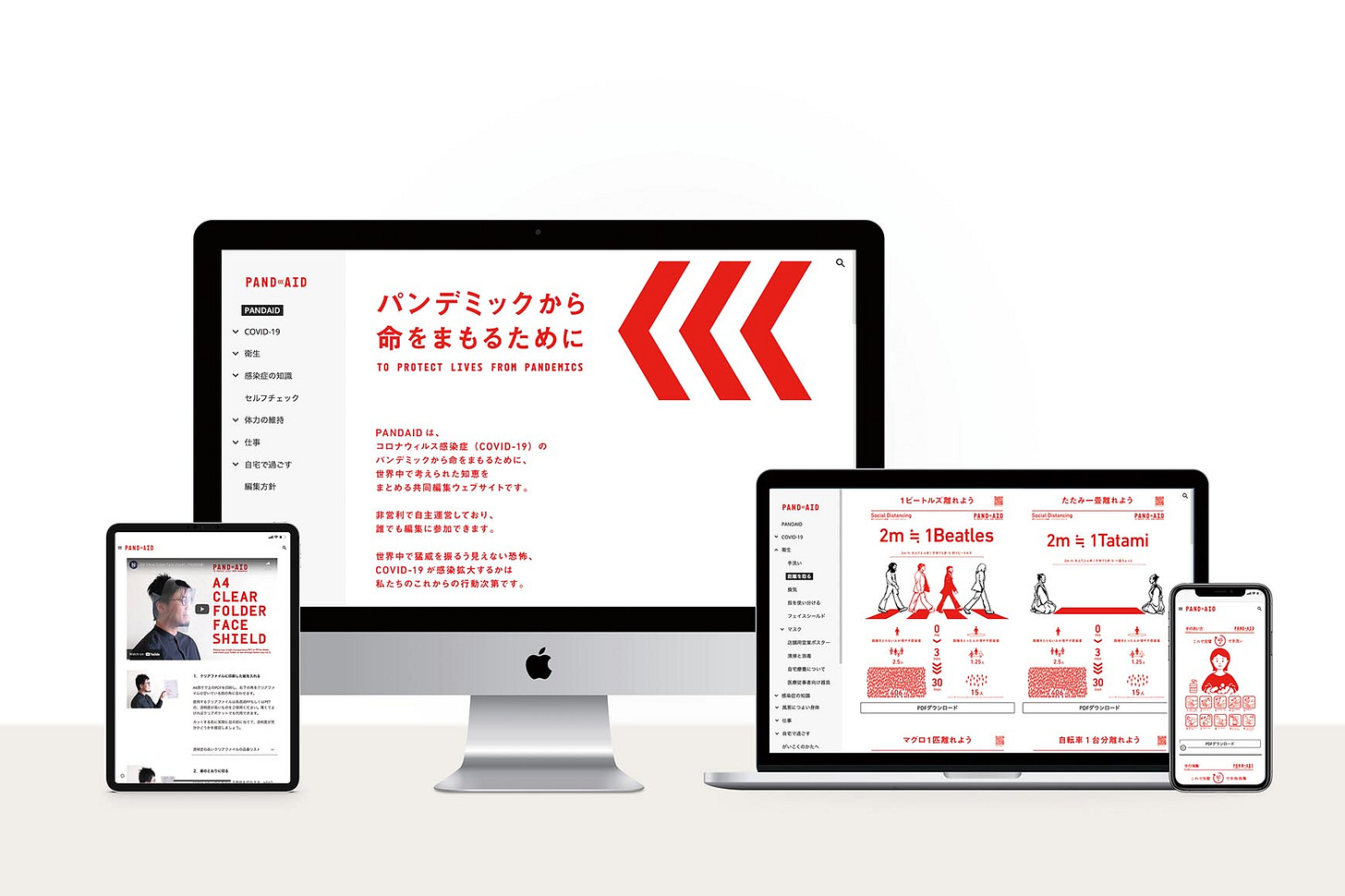 原田:いま自然とデザインの中の領域の話から、デザインの外の話にも繋げていってもらえたと思っているのですが、実際にNOSIGNERのプロジェクトではクライアントワークもそうですが、例えばパンデミックの時には「PANDAID」をご自身で立ち上げられたりもしていますよね。かつ、医療の専門家や編集的なスキルを持っている人まで色んな領域のスペシャリストを束ねたり、つなげていく役割を太刀川さんが担っているようなプロジェクトが多い気がします。