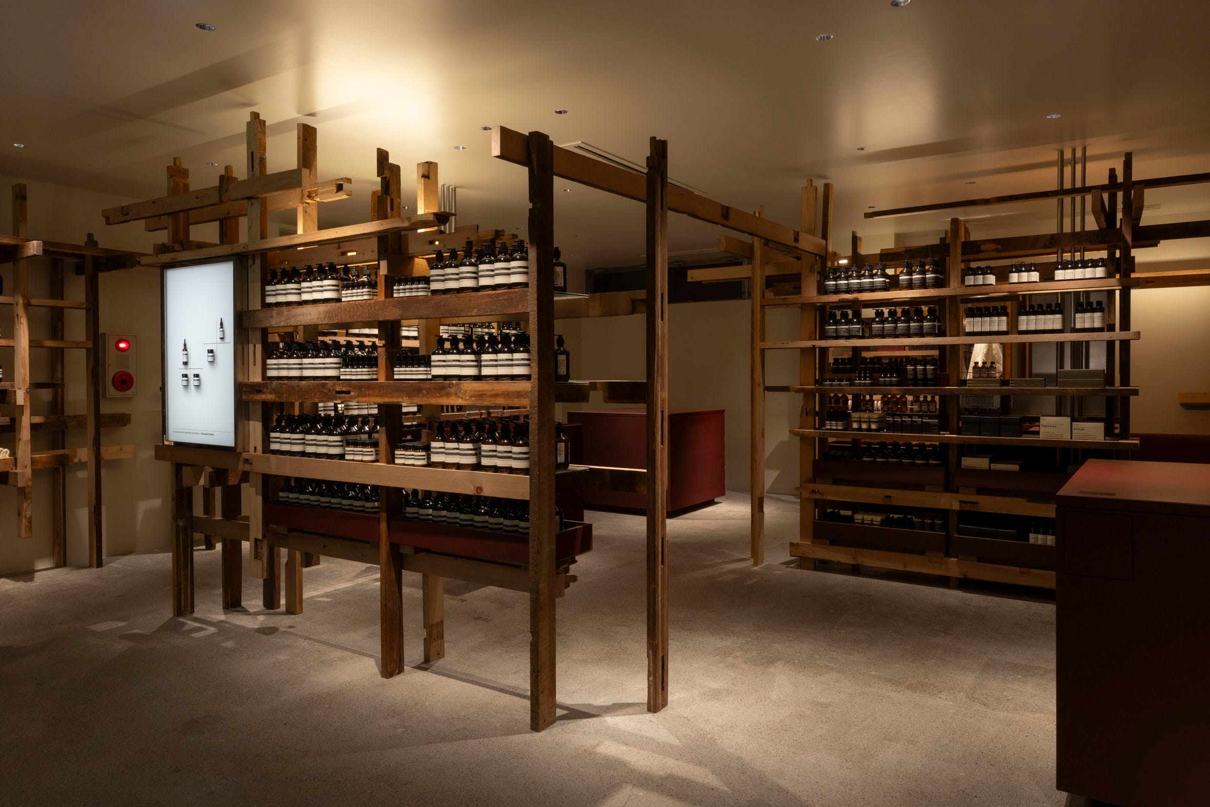 長坂:同時にそれは1回のプロジェクトでコンプリートするわけでもないので、前回の話のように古材にまつわることをずっとコネコネやっていくうちに、その都度完成はしてちゃんと作品にもなるのですが、やっぱり自分の中ではちゃんと進化していて、そういうものとまた違うものがどこかで混ざったりしてという関係を大事にしています。でも、「気づき」ですよね。本当にあの一連にはいろんな気づきがあって、例えばイソップ青山の時は単にアンティークというか古い表情がお店に必要で、そのために古材をどう入手するのかということを考えていましたが、そこから10数年経ってこないだつくったものでは、環境のことを考えた結果古材が必要になった。全く同じ行為をしているようだけど全然変わっているんですよね。ベネチアの時なんかは、あんなゴミみたいなものを感心しきりながら見ているヨーロッパの人たちを見た時に、僕らも価値は認めているものの、そこにまつわるストーリーにこんなにも共感するんだということが凄く面白くて。そうか、ゴミもよその国にスライドしたら価値を生むんだなと。