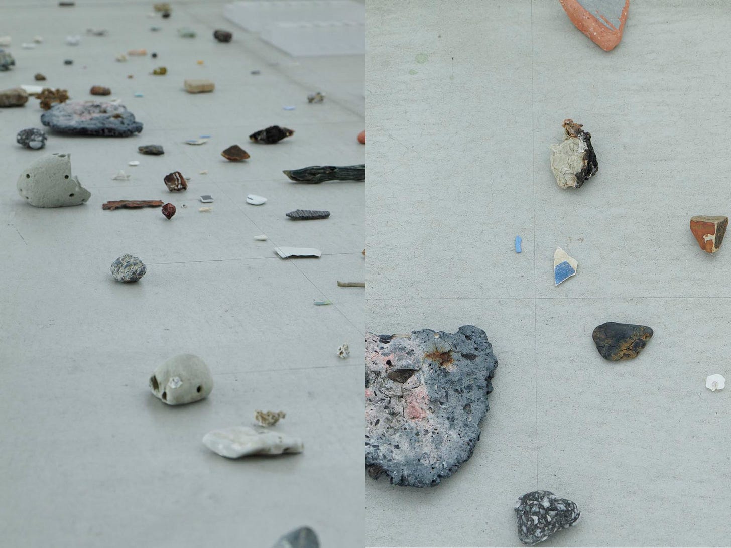 三澤:砂浜などはもうすでにコレクションされているところがあると思うんです。砂浜では、出来立てのものから数億年前のものまでが当然のように隣り合わせにある。学生さんの作品を当然のように見てはいけないという話と同じですよね。それを当然だと思って踏みしめるのではなく、一つひとつが全く違う組成、全く違うマテリアルでできていて、全く違う場所から来たかもしれなくて、全然違うストーリーを持っている。誰かが一回拾って落としたかもしれないし、同じものを良いと思った人もいるかもしれないし、素通りした人もいるかもしれないということに思いを馳せる場として砂浜を捉えてみると、全く違うグレーの地面が見えてくる。同じものを見ても全く違って見えてしまうという思考の動きに凄く興味があるんですよね。